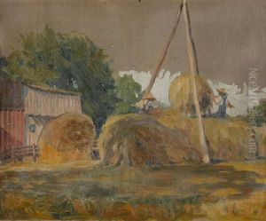 Haystacks And Red Barn