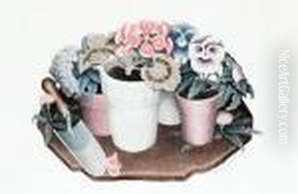Tame Flowers Oil Painting by Grant Wood