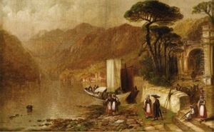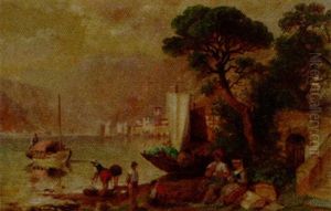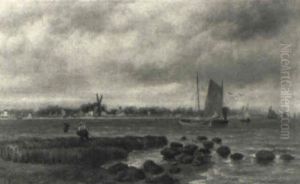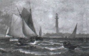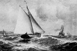 Fishing Boats And Other Shipping On The Hudson With A View Of New York And The Bluffs
