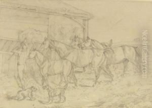 Saddling A Fresh Mount Oil Painting by Gray Phineas Bartlett