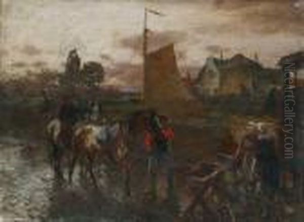 Landschaft Mit Bauern Am Kanal