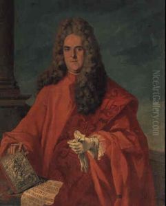 Portrait Of A Man In A Blue Coat With His Arm On A Draped Ledge