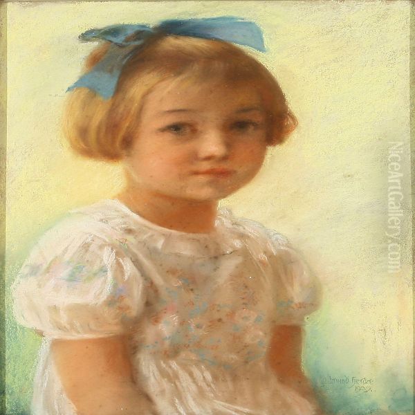 Portrait Of A Young Girl With Blue Bow In Her Hair