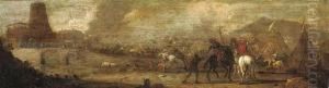 A Cavalry Skirmish Oil Painting by Guglielmo Cortese Il Borgognone