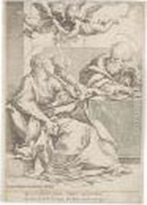 Christ In The Desert Receiving Food From Three Angels