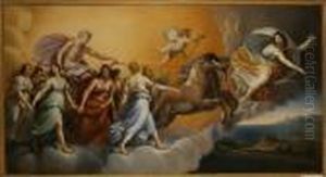 Sec. Xix. "carro Dell' Aurora". Olio Su Tela, Cm. 103x190, Corredato Da Cornice