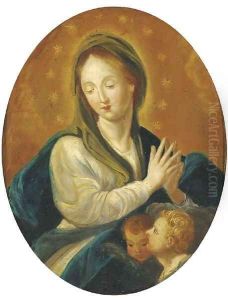 Madonna In Gloria Con Angeli Sovrastante Un Paesaggio In Lontananza