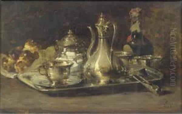 Bring the timeless beauty of Guillaume-Romain Fouace's A Silver Tete A Tete, A Bottle And Brioches On A Table into your home with a handmade oil painting reproduction. Carefully recreated on canvas by skilled artists using traditional techniques, this piece captures the delicate brushwork, subtle light, and vibrant color of the original masterpiece. With museum-level quality and rich texture, it brings elegance and artistic depth to any space. Enjoy free shipping and make this masterpiece a part of your personal collection.
