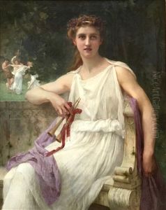 Nu De Jeune Femme Accoudee A La Colonne Tenant Le Baton De Dionysos