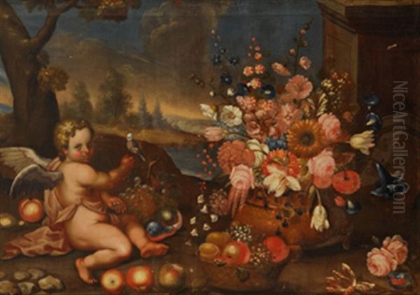 Paisaje Con Floreros Y Amorcillos (+ Another; Pair)