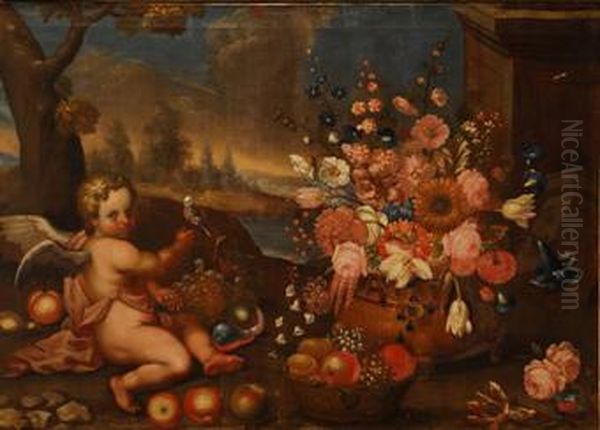 Par De Paisajes Con Floreros Y Amorcillos