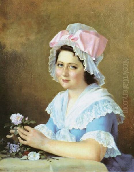 Ung Flicka Med Ros - Hand Painted Oil Reproduction