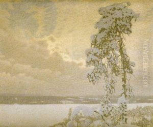 His paintings, characterized by their luminous and atmospheric qualities, often featured snowy landscapes of the Värmland region. He was particularly adept at capturing the play of light and shadow on snow, using a palette that conveyed the cold, crisp atmosphere of the Nordic winter.