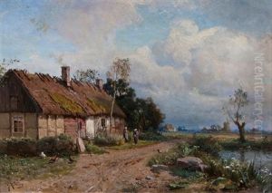 Sommarlandskap Med Skansk Gard, Figurer Och Pickande Hons