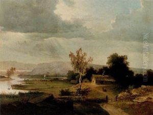 Landskap Med Sjo Och Hus
