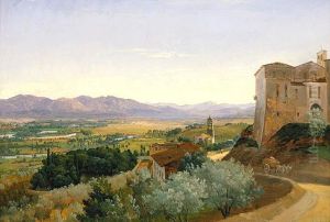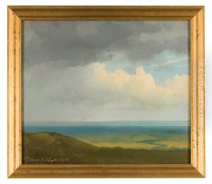 Sydlandskt Landskap Med Sjo, I Forgrunden Farhjord Med Tva Herdar