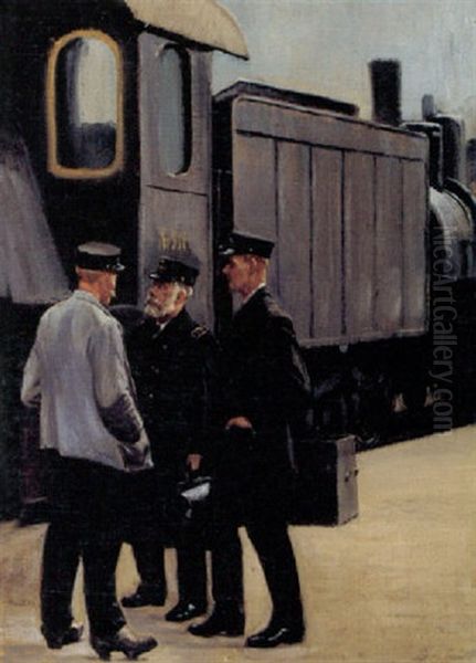 Jernbanefolk Ved Lokomotivet