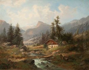 Gebirgslandschaft Mit Chalet Und Staffagefiguren