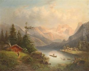 Alpenlandschaft Mit See, Bauernhaus Und Figurenstaffage