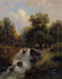 Landschaft Mit Wildbach Und Bauernhaus Im Salzkammergut, Figural Staffiert