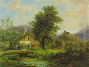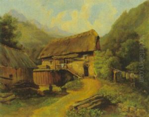 Gebirgslandschaft Mit Bauerngehoft Und Figurlicher Staffage