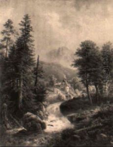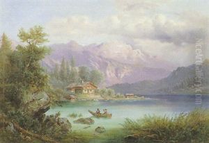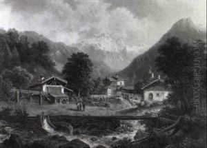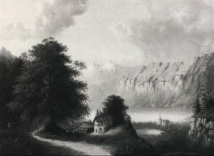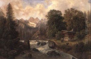 Gebirgslandschaft Mit Chalet Und Staffagefiguren