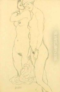 Akt Nach Links, Studie Fur 'Die Freundinnen' (Nude Turned To The Left, Study For 'Die Freundinnen')