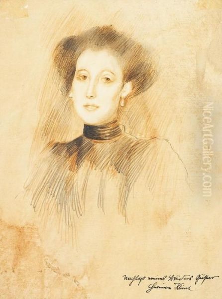 Brustbildnis Einer Dameim Hochgeschlossenen Kleid