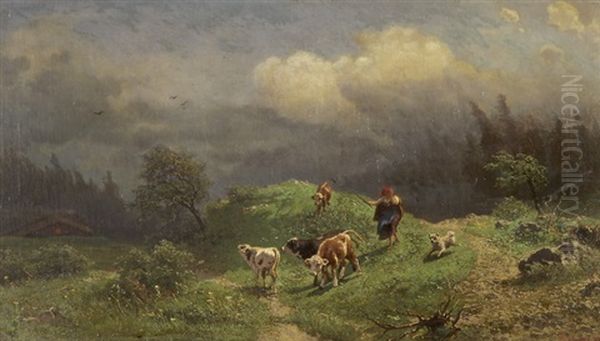 Bring the timeless beauty of Gustav Ranzoni's Kuhe Auf Der Alp Bei Aufziehendem Gewitter into your home with a handmade oil painting reproduction. Carefully recreated on canvas by skilled artists using traditional techniques, this piece captures the delicate brushwork, subtle light, and vibrant color of the original masterpiece. With museum-level quality and rich texture, it brings elegance and artistic depth to any space. Enjoy free shipping and make this masterpiece a part of your personal collection.