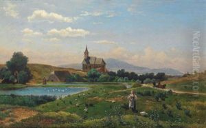 Landschaft Mit Kirche Und Figurlicher Staffage