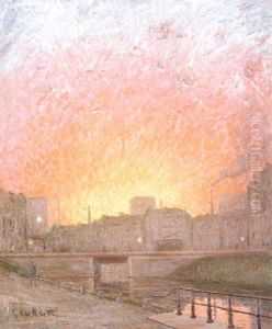 Canal A Gand, Belgique, Essai Du Soleil Couchant