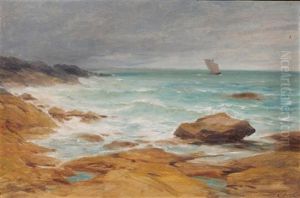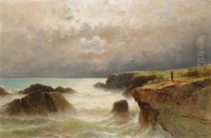 Rocky Coastal Landscape With Two Figures.