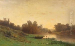 Flusslandschaft Mit Figuren Im Boot