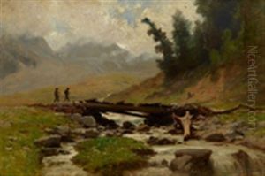 Reissender Gebirgsbach Mit Bauerin.