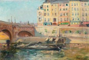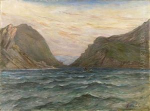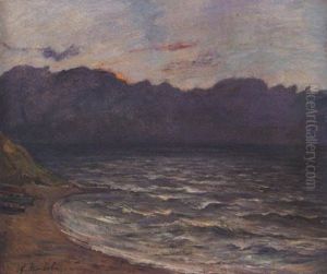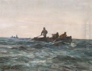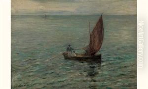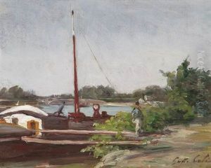 Uferlandschaft Mit Anglern Und Segelschiffen