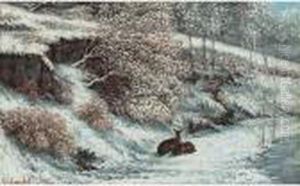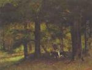 Szene De Chasse Dans Un Paysage De Sous-bois. Circa 1867.