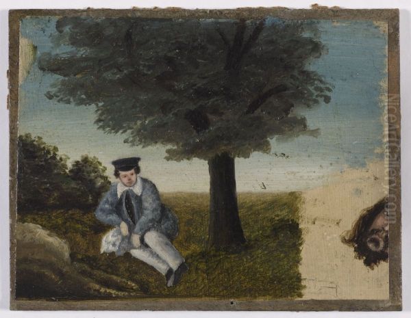 Autoportrait de Gustave Courbet a l'age de quatorze ans ; fragment de tete barbue