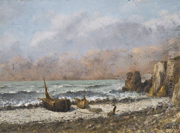 Deux Bateaux Sur La Plage Oil Painting by Gustave Courbet