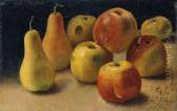 Fruchtestilleben. Auf Einer Tischplatte Apfel Und Birnen.