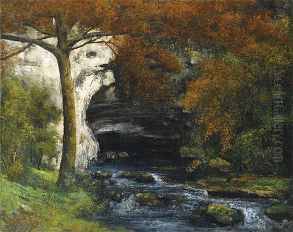 Source De Lison Pres De Nans Oil Painting by Gustave Courbet