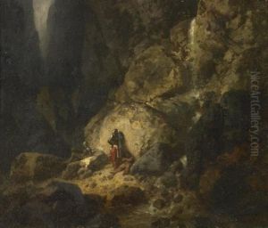 A Faggot-gatherer Resting In A Wooded River Landscape