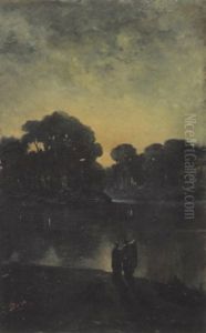 Figures Resting In A Lake Landscape