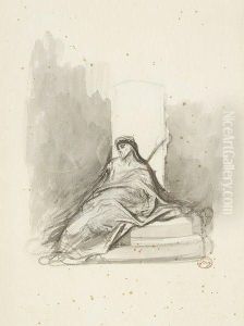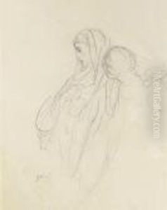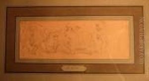 Studienblatt Mit Drei Figurlichen Motiven Zu "les Chasseurs". Unten Rechts Der Atelierstempel. Bleistift Auf Gelblichem Zeichenpapier (unter Glas Gerahmt). H 23; B 30 Cm. Verso In Den Ecken Reste Fruherer Montierung. Provenienz: Aus Dem Nachlas De
