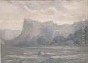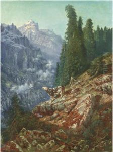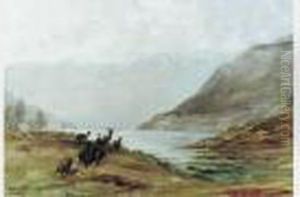 Ecossais Dans Un Paysage De Montagne Au Soleil Couchant, 1875.