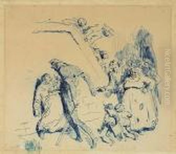 Street Scene With A Man Accosting A Woman Before A Crowd Ofonlookers