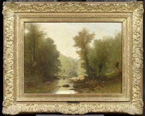 Waldlandschaft Mit Wildem Bachlauf Und Staffagefiguren