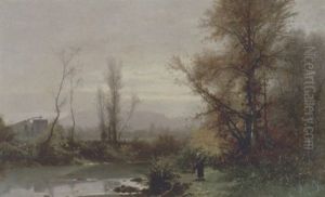 Landschaft Mit Zwei Blumen Pfluckenden Frauen