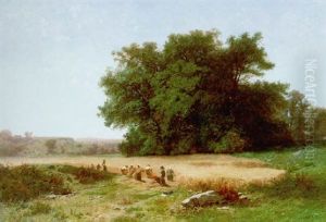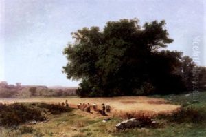 Paysage Avec Deux Jeunes Femmes Cueillant Des Fleurs Dans Un Pre