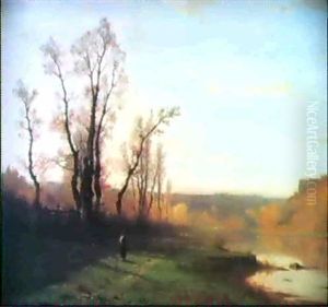 Paysage Avec Pecheur A La Liniere