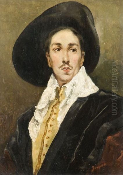 Portrait D'homme Au Chapeau Noir En Costume Du Xviie Siecle
